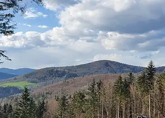 The Ruhmannsberg is a mountain near Hauzenberg, a town in the Lower Bavarian county of Passau. Its summit is 863 metres high.[1] At the foot of the mountain lie the villages of Kollersberg, Germannsdorf, Röhrendobel and Ruhmannsdorf. Nearby is the mountain of Staffelberg. On the Ruhmannsberg are many footpaths and forest tracks. The mountain is covered by woods and meadows.