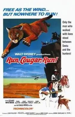 Run, Cougar, Run is a 1972 American Western film directed by Jerome Courtland and written by Louis Pelletier. The film stars Stuart Whitman, Frank Aletter, Lonny Chapman, Douglas Fowley, Harry Carey Jr. and Alfonso Arau. The film was released on October 18, 1972, by Buena Vista Distribution.[1][2]