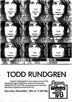 1978 print ad for Rundgren's simulcast concert at the Agora Ballroom in Cleveland