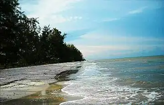 Rupat (Indonesian: Pulau Rupat) is an island in the Strait of Malacca, and forms part of Bengkalis Regency within Riau, Indonesia. It lies just off the eastern coast of Sumatra, across from Dumai city, from which it is separated by the Rupat Strait (Indonesian: Selat Rupat). Its area is 1,520.86 km2 (587.21 sq mi). The island is sparsely populated (50,803 in mid-2024), with an average population density of 33.4 per km2.[1] Rupat was one of thousands of abandoned islands, but its population is growing yearly, which has made the government expand the area for the settlement.