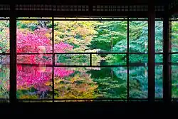 ![]() View of fall colors from the second floor of Rurikō-in. | |