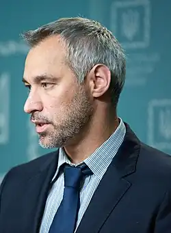 Ruslan Heorhiiovych Riaboshapka (Ukrainian: Руслан Георгійович Рябошапка; born 14 October 1976) is a Ukrainian jurist who was the Prosecutor General of Ukraine from August 2019 to March 2020.[1]