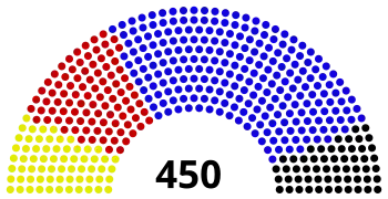 Legislative elections were held in Russia on 18 September 2016, having been brought forward from 4 December.[2] At stake were the 450 seats in the State Duma of the 7th convocation, the lower house of the Federal Assembly. Prior to the election United Russia had been the ruling party since winning the 2011 elections with 49.32% of the vote, and taking 238 seats (53%) of the seats in the State Duma.