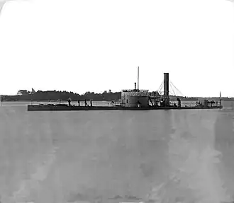 Latnik (Russian: Латник) was an Uragan-class monitor built for the Imperial Russian Navy in the mid-1860s. The design was based on the American Passaic-class monitor, but was modified to suit Russian engines, guns and construction techniques. She was one of two ships of the class to be built in Belgium and assembled in Russia. Spending her entire career with the Baltic Fleet, the ship was only active when the Gulf of Finland was not frozen, but very little is known about her service. She was stricken in 1900 from the Navy List, converted into a coal barge in 1903 and renamed Barzha No. 38 and then Barzha No. 326. Abandoned by the Soviets in Finland in 1918, the ship was later scrapped by the Finns.