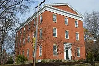 Built in 1853, this historic structure is a three-story, rectangular, brick building that was designed in the Greek Revival style, measures fifty feet by ninety feet, and has a low gabled roof and pediment. It was the second building built on the Allegheny College campus, after Bentley Hall, and was named for Rev. Martin Ruter, the first Methodist president of the college from 1834 to 1837.[2] It currently houses the college's Modern and Classical Languages and International Studies departments.[3]