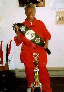 ![]() Ruth G. King displaying an award for tai chi | |