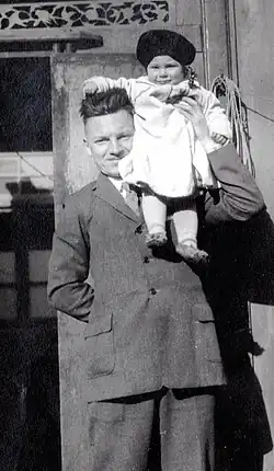 Six months after her birth in Brooklyn, New York, Ruth and her missionary parents,[4] Edwin and Alice Elliott, ventured across the pacific on the Canadian ocean liner, the RMS Empress of Asia arriving in Tianjin, China. At age two, Ruth was speaking both Mandarin Chinese and English.[1] Her best friends were Chinese even though they referred to her as a "Little Foreign Devil". Growing up in China, Ruth Elliott observed her father as he designed and built everything from prosthetic limbs for the handicapped to church structures. Her sister, Winnifred, was born in China but died at the age of three. Here, the Elliotts learned to sacrifice for a greater cause as her parents had dedicated their lives to helping the Chinese people.[5]