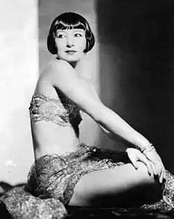 Ruth entered show business about 1923 when her friend, Blanche Mehaffey, told of her fun experiences at the Ziegfeld Follies.[27] Ruth dropped out of Barnard College and signed a contract to dance chorus at the New York Hippodrome theater (three miles from her house).[1][note 3] She then sought out and performed at many of the top New York City nightclubs, speakeasies and Broadway theaters until the mid-1940s, including: the original Cotton Club, Savoy Ballroom, Onyx Club, Reisenweber's Cafe, Adrian's Tap Room, Smalls Paradise, Helen Morgan's 54th Street Club, The Nest, Nick's, and Leon & Eddie's.[25][6][10] She was the first Japanese performer on Broadway and one of the first chorus girls who sought to produce her own Broadway show.[7][20][24][1][19][20][7] From 1922 to 1936 she worked as a chorus girl, singing and dancing in musicals. Early on Ruth worked for Broadway producer Vinton Freedley then for Arthur Hammerstein and then for Billy Rose (1931-1935).[28][1] Ruth performed in at least eight Broadway musicals: "Song of the Flame", "The Wild Rose", "Lady Do", "Funny Face," "Hold Everything," "Sweet and Low," "Billy Rose’s Crazy Quilt", and "Heads Up."[2][9][24][1] The highly acclaimed shows were: Funny Face, Hold Everything!, Song of the Flame, Heads Up, and George White's Scandals.[note 4]