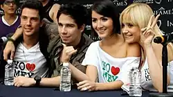 ![]() Senderos in an autograph firm in June 2012 with Lisette Morelos, Aldo Gallardo, and Eréndira Ibarra | |