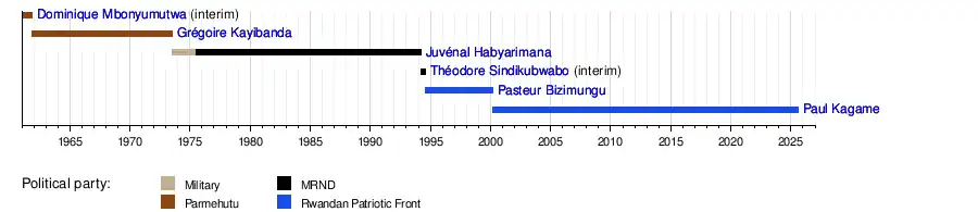 11 years, 4 days | Hutu | Parmehutu | Position abolished | [6][7] | |