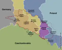 The Rychtal Region with 11 localities, about 85 km2 and about 4,600 inhabitants was attached to Poland in 1921 without a referendum.[2] A privately organized survey of the population resulted in a clear vote in favor of remaining with Germany. In the absence of international monitoring, this opinion poll did not meet the requirements of a plebiscite and was not taken into account when drawing the boundary.