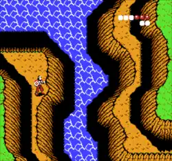 Unlike all other versions of Rygar, the NES version is not exclusively side-scrolling. At the beginning of the game, Rygar has access to much of the game's map, via a hub-like central area, which is played from a top-down perspective.[13][29][32] As the game progresses, new areas open up as a result of finding items such as the grappling hook, crossbow, and pulley, which allow Rygar to get past previously impassable obstacles.[13][29][31] Rygar can also collect a coat of arms, which allows him to replenish his health in safe rooms.[35] These safe rooms are occupied by NPCs who will give advice to the player.[13][29]