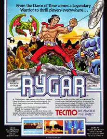 Rygar[b] is a 1986 platform video game developed and published by Tecmo for arcades. The player assumes the role of a "Legendary Warrior" who must navigate numerous levels and defeat enemies with a weapon called the "Diskarmor", a razor-sharp shield with a long chain attached to it that operates like a yo-yo. The warrior intends to defeat Ligar, an evil "dominator". Later ports, particularly the NES and Lynx versions, expanded on the near non-existent story from the original.
