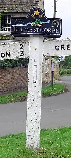 Also in the parish is the hamlet of Belmesthorpe situated just South of Ryhall about three miles (5 km) north of Stamford in Lincolnshire. Apart from the Blue Bell Inn, there are two old farmhouses here as well as a few old cottages in the main street as well as two former dovecotes both now converted into private dwellings. Castle Rise is a cul-de-sac added in the 1960s but there is no evidence for any castle having been located there.