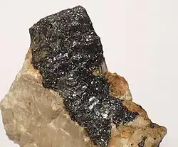 Rynersonite (Ca(Ta,Nb)2O6) is an oxide mineral. It crystallizes in the orthorhombic crystal system. It is dull, translucent mineral, fibrous in nature. Usually off-white to pale pink in color. It occurs in granitic pegmatites and was first described for an occurrence in San Diego County, California in 1978.[1][2][3]