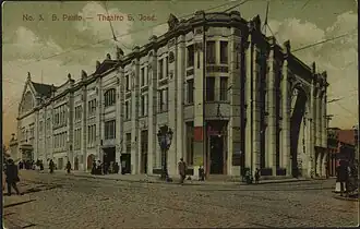 The São José Theater (Portuguese: Theatro São José) was an important venue located in Largo São Gonçalo, now Doutor João Mendes Square, in the Brazilian city of São Paulo. Inaugurated on September 4, 1864, its first premises accommodated 1,200 people. In 1898, a fire destroyed the building and a new theater was erected next to the Viaduto do Chá.[1]