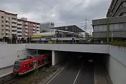 The City Tunnel Offenbach is 3.7 kilometres (2.3 mi) long and has three underground stations, which are served by the lines S1, S2, S8 and S9. Opening: 1995