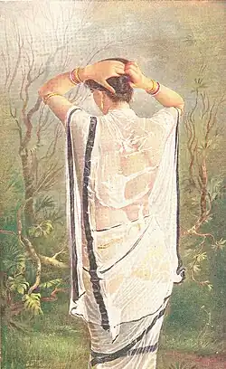 From Mumbai he moved to Kolkata where he lived and worked for several theatrical companies,[8] working initially at Madan Theatre as a scene painter.[1]: 52 The Tagores became his patrons, and the public too got to appreciate his work through reproductions in Bengali journals. His seductive paintings of women, such as After the Bath were especially popular.[9] According to Partha Mitter, author of The triumph of modernism: India's artists and the avant-garde, 1922–1947 and the art critic Krishna Chaitanya, Thakur Singh followed the style of the Bengali artist Hemendranath Mazumdar in painting such themes.