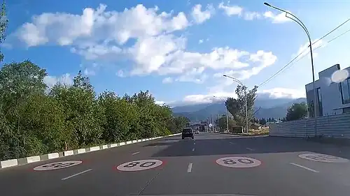 The Georgian "Law on motor roads" stipulates that the reference point for the mileage of roads leaving Tbilisi is Freedom Square.[46] This means Freedom Square is the reference point of the S1 mileage reflected in the tables below (and the kilometer posts along the road) while not necessarily its actual starting point, which is a bit harder to determine precisely. The speed limit on motorway sections is 110 km/h (70 mph) and 90 km/h (55 mph) on highway sections, with the exception of passage through towns and villages (60 km/h (35 mph), may vary locally) and within the Tbilisi city limits (60 to 80 km/h or 35 to 50 mph).
