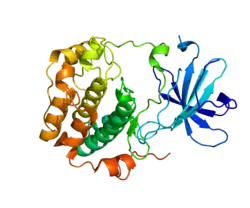 SGK1 belongs to a subfamily of serine/threonine kinases that is under acute transcriptional control by several stimuli, including serum and glucocorticoids. The kinase is activated by insulin and growth factors via phosphatidylinositide-3-kinase, phosphoinositide-dependent protein kinase PDPK1 and mammalian target of rapamycin mTORC2.[5][6] It has been shown to "regulate several enzymes and transcription factors; SGK1 contributes to the regulation of transport, hormone release, neuroexcitability, inflammation, cell proliferation and apoptosis".[5][6] SGK1 increases the protein abundance and/or activity of a variety of ion channel, carriers, and the Na+/K+-ATPase. Over the past few years, there has been increasing evidence that SGK1 expression is regulated during both discrete developmental stages and pathological conditions such as hypertension, diabetic neuropathy, ischemia, trauma, and neurodegenerative diseases.[7]