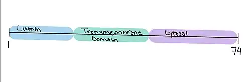 The other domains include a luminal domain from amino acids 1 - 19 and cytosolic domain from amino acids 43 - 74.[14][15]