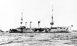 The ship was protected by a curved armor deck that was 80 mm (3.1 in) thick amidships. The deck sloped downward at the sides, with a thickness of 45 mm (1.8 in), to provide protection against enemy fire. The conning tower sides were 100 mm (3.9 in) thick. Her main battery guns were fitted with 50 mm (2 in) thick gun shields.[3]