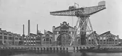 Sachsen was ordered under the fourth and final Naval Law, which was passed in 1912.[12] Kaiser Wilhelm II approved the design, which had already been ordered from the Germaniawerft shipyard in Kiel; the Reichstag had not officially approved the budget, making the beginning of construction a matter of risk for the shipyard. Funding for the vessel was duly authorized, and on 21 February 1914, the battleship Kronprinz was launched, which cleared the slipway that had been reserved to build Ersatz Kaiser Friedrich III. Preparatory work began immediately after Kronprinz vacated the slipway and on 21 March, Wilhelm II signed the final order to build the new ship. Her keel laying took place on 15 April, and she was assigned the construction number 210. Initial work proceeded slowly, owing to the start of World War I in July, as resources were diverted to complete fitting-out work on Kronprinz as well as several torpedo boats and U-boats under construction at the yard. Her completed hull was scheduled to be launched in early 1916, but the delays pushed her launching to 21 November. Her completion had been planned for early 1917, but increased shortages of material and labor, particularly as these resources began to be diverted to supporting the U-boat campaign against Britain, further slowed work, which eventually ground to a halt.[13][14][15]