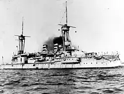 Wörth and the rest of the fleet operated under the normal routine of individual and unit training in the first half of 1897.[17] The ship represented Germany during the Fleet Review for Queen Victoria's Diamond Jubilee in June 1897.[18] The typical routine was interrupted in early August when Wilhelm II and Augusta went to visit the Russian imperial court at Kronstadt; both divisions of I Squadron were sent to accompany the Kaiser. They returned to Neufahrwasser in Danzig on 15 August, where the rest of the fleet joined them for the annual autumn maneuvers. The maneuvers were completed by 22 September in Wilhelmshaven. In early December, I Division conducted maneuvers in the Kattegat and the Skagerrak, but they were cut short due to shortages in officers and men.[19]