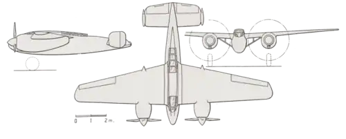 Meanwhile, an order for six aircraft had been placed in 1938 for evaluation purposes under the designation NC-600.[5] The design was now intended to meet a 1936 specification for a long-range fighter,[5] competing with the Potez 670 and the SNCASE SE.100.[6] The H.220-2 was exhibited at the 1939 Brussels Air Show to represent the NC-600, but the real NC-600 was a further redesigned aircraft, with new wings and revised tail surfaces, and was now being offered as a two-seat aircraft. The proposed armament was also revised, with two additional fixed forward firing machine guns and the two rear-firing guns replaced by a single flexibly mounted cannon.[4]