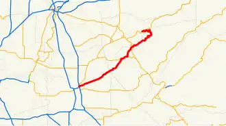 SR 26 is part of the California Freeway and Expressway System,[3] and in the Stockton city limits is part of the National Highway System,[4] a network of highways that are considered essential to the country's economy, defense, and mobility by the Federal Highway Administration.[5] The segment between the community of Mokelumne Hill and West Point is named the Stephen P. Teale Highway, after the state senator. The bridge crossing the Middle Fork of the Mokelumne River, near West Point, is named the Tom Taylor Bridge, after a Calaveras County Supervisor.[6]