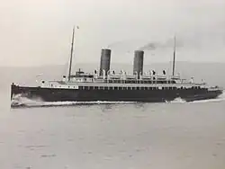 A powerful steam windlass was situated forward on the shelter deck for working the anchors, which were arranged to be stowed in hawse pipes, and two large capstans were fitted aft on the shelter deck for warping purposes.[4] A combined steam and hand steering engine was also located aft, and this was controlled by a telemotor gear from the navigating bridge.[4] There was also a powerful steering gear situated forward, the purpose of which was to operate a bow rudder so as to facilitate the quick turning and manoeuvring of the vessel when entering or leaving port.[4] For the stern rudder there was a combined steam and hand gear.