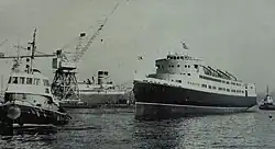 Ben-my-Chree (No.186355) was constructed by Cammell Laird at a cost of £1,400,000 (equivalent to £34,238,901 in 2023).[1] She was the second of four car ferries ordered by the Isle of Man Steam Packet Company and was virtually identical to her sister Manx Maid, built four years earlier.