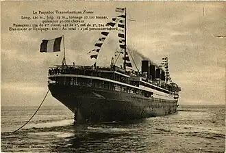 - ^ a b "Histoire de la Compagnie Générale Transatlantique". Compagnie Générale Transatlantique (French Line) (in French). Archived from the original on 3 July 2011. Retrieved 30 June 2011.