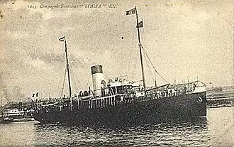 SS Italia was a French passenger steamship that was built as a civilian ship in 1904. It was used for Transatlantic Immigration from Italy to America likely from Genoa or Naples to New York, until it was requisitioned by the French Navy in the First World War as an armed boarding steamer, and sunk by an Austro-Hungarian Navy U-boat in 1917.