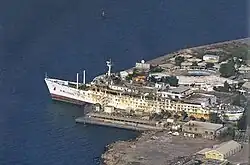 She was christened by Pat Nixon, the then-Second Lady of the United States[2] and set sail on her maiden voyage from New York City on October 11, 1958, just one day after preparations for service were completed. Her sister entered service the following year. The ship was considered remarkable for her time, with her fireproof aluminum panel interiors and, unlike other ships of their service, every single cabin had its own bathroom. In the early 1960s Grace abandoned their South American route and put the Santa Paula and her sister on Caribbean cruising service permanently. On November 25, 1964, while the Santa Paula was returning to New York from the Caribbean, the Israeli passenger ship SS Shalom collided with the tanker MV Stolt Dagali, slicing its stern section off. The Santa Paula was the first ship to respond to the SOS sent out by the tanker's crew, and managed to rescue 25 of the 43 on board.[3] After being operated successfully for 11 years, Grace Line sold their shipping interests to the Prudential Lines, becoming Prudential-Grace Lines. Despite high passenger numbers, in January 1971 she was put out of service and laid up at Hampton Roads, Virginia.[4] Within a year the Santa Paula was sold to Oceanic Sun Line for service as a cruise ship.