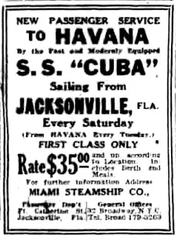 - "Advertisement: New York Direct to Miami S.S. "Cuba"". Brooklyn Daily Eagle. January 18, 1925. Retrieved October 9, 2014.
