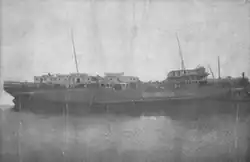 - ^ The photo of the hulk in this reference shows the vessel stripped of all superstructure and deck houses with a stream of water being ejected from the port side.