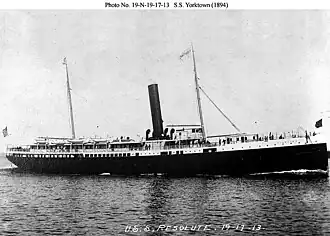 The U.S. Navy purchased Yorktown from the Old Dominion Steamship Company on April 21, 1898, for Spanish–American War service commissioning the ship as USS Resolute on May 11, 1898.[1]