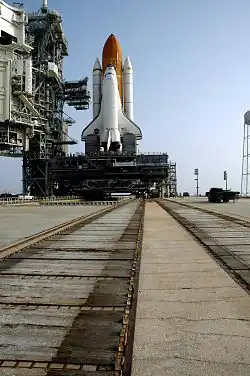 Atlantis was rolled out from the Orbiter Processing Facility to the Vehicle Assembly Building (VAB) on July 24, 2006. It was lowered onto the mobile launcher platform on July 26 and rolled out to Pad 39B in the early morning hours of August 2. The rollout was scheduled for July 31, but a storm in the vicinity of the Kennedy Space Center resulted in a delay of two days from fears of the orbiter being hit by lightning, which could cause immeasurable damage.
