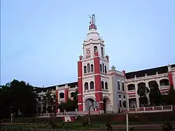 The college which was one of the last bastions of male exclusivity has opened its door to female students to various undergraduate programmes.[19] The college is also appreciated for its beautiful combination of Victorian architecture, characterized by the use of red bricks, pointed and semicircular arches, ornate detailing, dome and towering structures, with a blend of Dutch colonial and Dravidian architecture,[20] especially in the college tower, Kurialacherry block and the chapel.[8] The college has one of the largest college libraries in South India, with more than a collection of 100,000 books.[21] The college also kept the 100 year old tradition of starting the day with the one minute hymn 'Lead, Kindly Light' by Cardinal Newman which is said to halt everyone from their work. The college is also one of the noted Catholic Institutions in the world notable for producing three Cardinals of Catholic Church .[22]