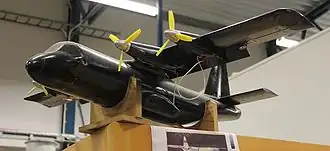 Two variants of a feederliner project were under development at Svenska Aeroplan AB from 1966 to 1968 with a projected first date of operation in 1973, the Saab 1071 and the Saab 1073.[1] The design goals for both designs were minimization of turnaround time at an airport as well as production and operation costs.[2] Following an intensive market research Saab wanted to compete with terrestrial transport in both aspects. A model of the 1071 was presented at the Hannover air show in April 1968 and model photos as well as illustrations of both projects appeared in the specialized press at about the same time.[3][4][5] Saab needed foreign partners to share the development costs, and as none were forthcoming, Project 10 was abandoned.[6]
