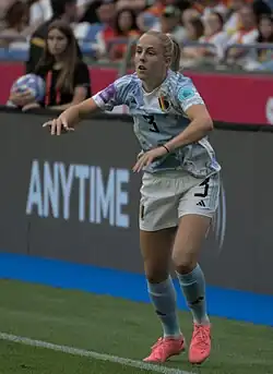 - ^ "Red Flames dansen, zingen en glunderen na EK-kwalificatie: "Zeer belangrijk voor ons vrouwenvoetbal"" [Red Flames dance, sing and beam after European Championship qualification: "Very important for our women's football"]. Sporza (in Dutch). 5 December 2024.