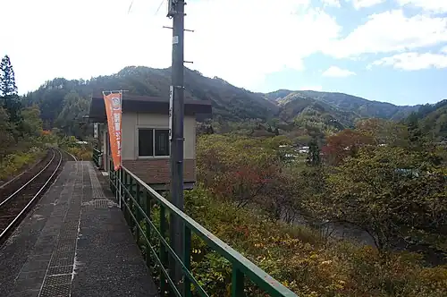 The station has a single side platform serving a single bi-directional track. There is no station building, but only a rain shelter on the platform.