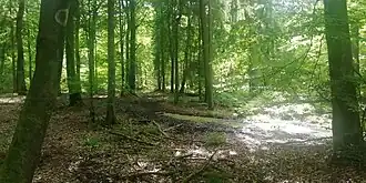 The Sachsenwald (German pronunciation: [ˈzaksn̩valt] ⓘ) is a forest near Hamburg, Germany. The forest derives its name, which can be translated as 'Saxon woods' or 'Saxony forest', from being located in the former Duchy of Saxe-Lauenburg, which itself is a part of the greater Lower Saxony region as defined by the former Duchy of Saxony. Today, the forest is an unincorporated area in the district of Herzogtum Lauenburg (Duchy of Lauenburg) in Schleswig-Holstein. It is also a member of the amt Hohe Elbgeest, in which it has non-voting representation. The Sachsenwald has an area of 68 square kilometres (26 sq mi) and is the largest contiguous forest area in Schleswig-Holstein.[2]