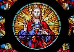 Stained-glass window with the Sacred Heart of Jesus in a parish church in Southern Germany
