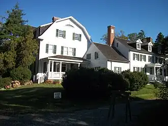 Sagtikos Manor is a historic home located in West Bay Shore, Suffolk County, New York.[2] It is a long, eclectic structure which has been extensively enlarged by additions and alterations during its long and active life as a residence. The original section was built around 1697 and is a 1+1⁄2-story, timber-framed structure with a gable roof. Additions occurred through the early 20th century. Also on the property is a carriage house, caretaker's cottage, buttery, potting shed, formal gardens, and Thompson-Gardiner family cemetery.[3]