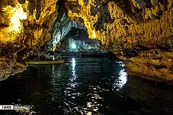 Saholan Cave has a lake inside which sometimes reaches a depth of about 60 meters. The cave's height from the lake floor is about 50 meters. The temperature inside of the cave is about 15 degrees cooler than the temperature outside of the cave. It is between 5-10 degrees Celsius. Saholan Cave is one of the largest water caves in Iran and boating on its lake is one of the most attractive attractions of this cave. The water of these lakes is supplied from underground aquifers and simmering water fountains. Saholan Cave has two entrances, one of which is the main entrance. At the main entrance of the cave, about 100 concrete steps have been installed to make it easier to enter it.