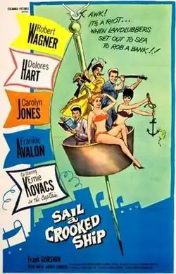 Sail a Crooked Ship is a 1961 American black-and-white comedy heist film starring Robert Wagner, Dolores Hart, Carolyn Jones, Frankie Avalon, Ernie Kovacs and Frank Gorshin. It was directed by Irving Brecher and was based on the 1960 novel of the same name by Nathaniel Benchley.[2]