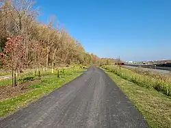 In 2021, the 2.7 kilometres (1.7 mi) long park was opened to the public. The west entrance is at Sainte-Anne de Bellevue Boulevard and Brock Avenue South. The east entrance is at Rue Pullman, just northwest of the Turcot Interchange.