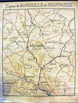 At Saint-Omer-en-Chaussée, the former Beauvais–Amiens railway connected to the Épinay-Villetaneuse–Le Tréport-Mers railway. The line Beauvais - Amiens was discontinued on January 9, 1939 and the service was replaced with buses. The only remains of the goods station are the far end of the railway junction that led to the Maggi milk factory.